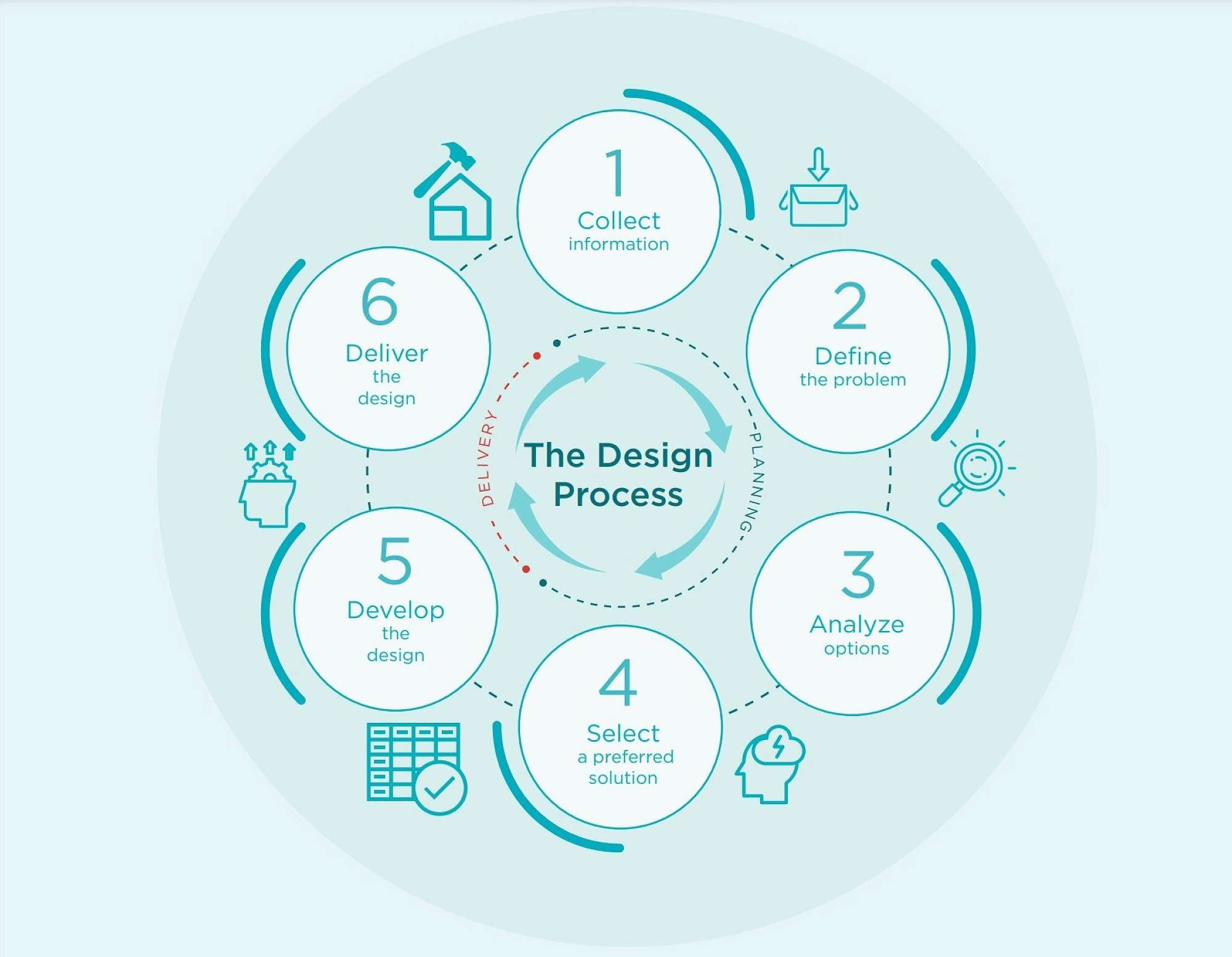 - 1.3.3 Analyse Options – Evaluate design options before arriving at a solution. Avoid accepting a solution before investigation and option analysis have been carried out.